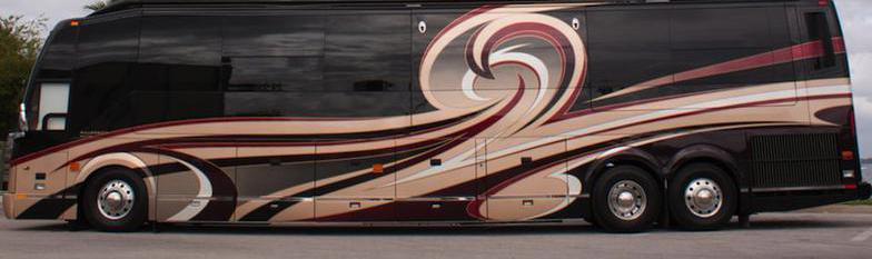 RV Paint Department has been the industry leader in motorhomes, RVs and buses painting for over thirty years. We have a group of highly skilled professionals who are dedicated to providing your vehicle with the ultimate automotive finish. We treat each vehicle like our own. We take pride in the reputation that we have built for consistent quality workmanship that is well known throughout the industry. Our use of cutting edge paint technologies have made us the best paint design team in the industry. Our distinctive paint designs are commonly seen on RVs, buses, trucks and the most luxurious motorcoaches around the world.